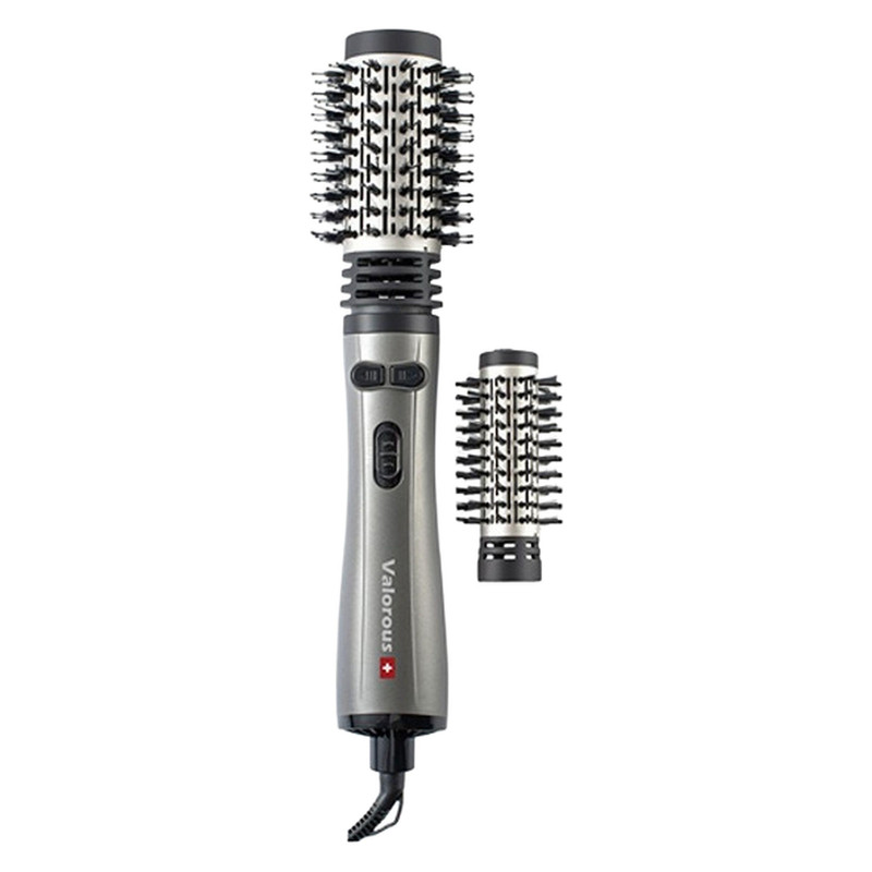 سشوار برسدار چرخشی حرفهای والوروس مدل VL-507، موتور AC با توان مصرفی 1200 وات، دارای قابلیت تعویض سری، طراحی ارگونومیک، دارای سری قابل تعویض، با حالت صافکننده، حجمدهنده و فرکننده، تنظیم حرارت 2 حالته و کنترل سرعت 2 حالته، به همراه 2 سری برسدار