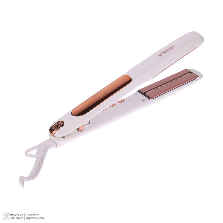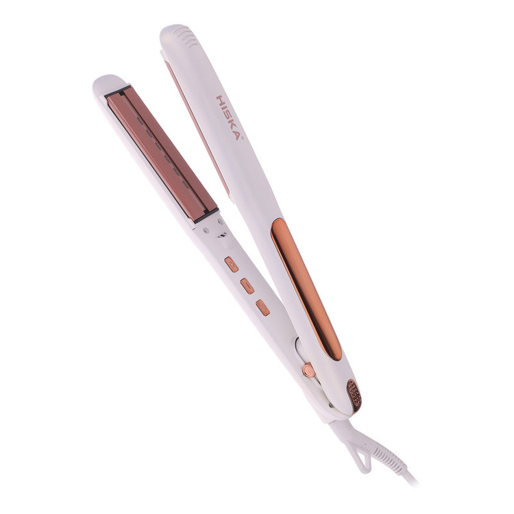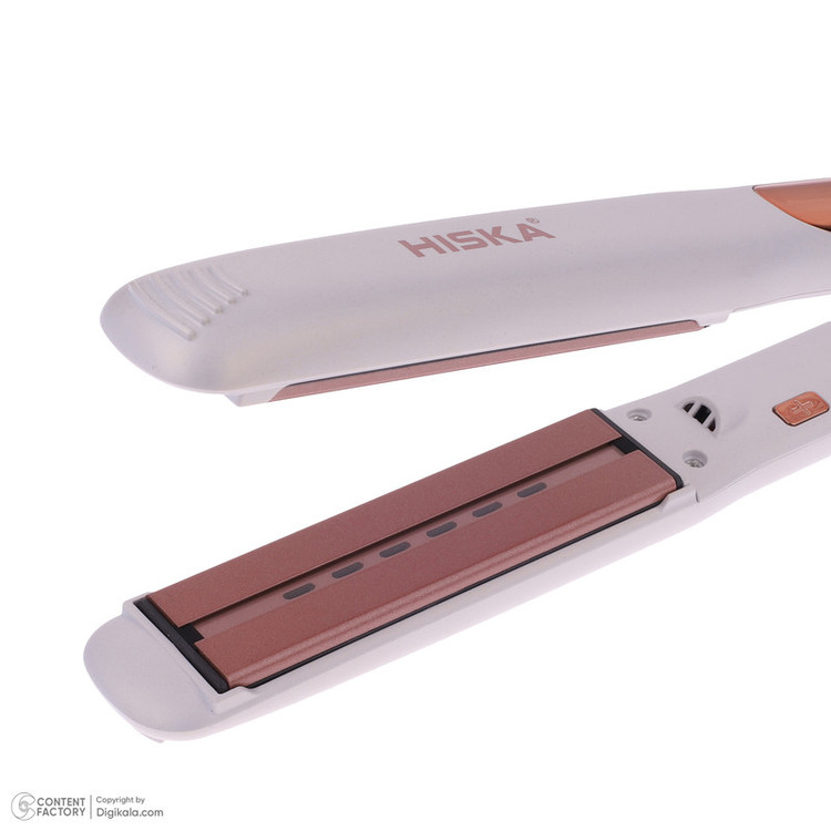 اتوی موی سر برند هیسکا یک محصول مناسب برای حالت دادن به موها در کمترین زمان ممکن با توجه به محدود کردن حرارت تولید شده برای جلوگیری از آسیب به ساقه مو می باشد. اتو صاف کننده موی سر هیسکا مدل H5106 ابزاری قابل اعتماد و مقرون به صرفه است که برای استفاده آسان و سریع طراحی و ساخته شده و به واسطه ابعاد مناسب در سفر نیز قابل حمل است. بدنه این محصول با رنگ سفید پوشانده شده و در قسمت رویی که LCD نشان دهنده درجه حرارت قرار گرفته از ترکیب رنگ مسی استفاده شده که زیبایی بسیاری به محصول داده است. اتو مو هیسکا مدل H5106 دارای صفحه 1 اینچی سرامیکی با تکنولوژی آیونیک می باشد که بین آن اینفرارد قرار گرفته که به لطف تکنولوژی آیونیک و اینفرارد از خشکی مو جلوگیری میکند و همچنین از موهای دارای رطوبت در برابر گرمای زیاد محافظت میکند و باعث افزایش صافی مو و لطافت مو میگردد. حداکثر دمای اتو مو هیسکا 230 درجه سانتی گراد می باشد که برای انواع مو مناسب میباشد. یک کلید برای روشن و خاموش کردن و 2 کلید برای تنظیم دمای عملکردی دستگاه در میانه آن تعبیه شده است. اتو مو هیسکا H5106 دارای سیم پیچ حرارتی با توان مناسب می باشد که قادر است تنها در عرض 30 ثانیه به حداکثر گرمای تنظیم شده برسد. همچنین خاموشی خودکار این محصول پس از 60 دقیقه عدم استفاده می باشد. به طور کلی می توان گفت، HISKA H5106 یک اتو موی مناسب و مقرون به صرفه جهت استفاده در خانه و محل کار شماست که قادر است با ولتاژ 110 - 240 ولت برق شهر کار کند. این محصول دارای یک کابل با قابلیت گردش 360 درجه به طول 3 متر می باشد و دوشاخه سازگار با برق ایران است.