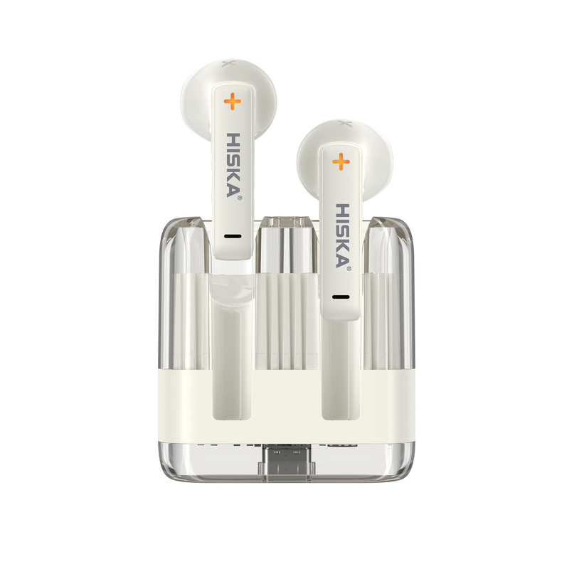 طراحی و تولید هندزفری بلوتوثی به دلیل حذف برخی از محدودیتهای گوشی موبایل مانند امکان مکالمه امن حین رانندگی، گوش دادن به موسیقی در حال ورزش و رفع مشکل پیچ خوردن و پارگی سیم هندزفری ها مورد استقبال بینظیر افراد قرار گرفت. هندزفری بلوتوثی هیسکا مدل FX-559 نمونهای باکیفیت از هدفونهای بلوتوثی است که سبک بوده و استفاده طولانی مدت از آن شما را آزار نمیدهد و میتوانید در هر موقعیتی به راحتی موسیقی مورد علاقه خود را گوش بدهید. بدنه هندزفری بی سیم هیسکا FX-559 از پلی کربنات نسوز و پلاستیک ABS ساخته شده که مقاومتی بسیار بالا را به بدنهی هندزفری داده؛ طراحی شفاف کیس آن، این محصول را از دیگر محصولات از نظر ساختاری متمایز کرده و فوقالعاده جذاب است. ابعادی برابر با 19*42*46 میلیمتر دارد. جمعوجور است و به آسانی درون جیب جا میگیرد. گوشیها از نوع نیمه در گوش هستند؛ در ساختار آنها خبری از کلاهک سیلیکونی نیست اما به خوبی در گوش قرار میگیرند و هنگام استفاده طولانی مدت هم احساس ناراحتی نخواهید کرد. هیسکا برای اتصال به هندزفری وایرلس FX-559، بلوتوث نسخه 5.3 را در نظر گرفته تا تجربه اتصالی سریع را برایتان به ارمغان بیاورد. برد مسافتی آن هم حدود 10 متر بدون مانع است. باتری لیتیوم پلیمری محفظه هدفون هیسکا ظرفیتی برابر با 300 میلیآمپر ساعت دارد و ظرفیت هدفونها هم برابر با 30 میلیآمپر ساعت است که با شارژ کامل میتواند 4 ساعت پخش موسیقی، در حالت مکالمه 3.5 ساعت مورد استفاده قرار گیرد. شارژ محصول توسط درگاه تایپ سی موجود در کیس به مدت حدود 2 ساعت انجام پذیر است. پنلهای لمسی که روی هندزفری وایرلس هیسکا طراحی شده، استفاده آسانتر را برای کاربر به همراه دارد. میتوانید از آن برای کم و زیاد کردن صدا، تغییر آهنگ، قطع یا وصل تماس تلفنی، پلی و پاز کردن موسیقی استفاده نمایید.