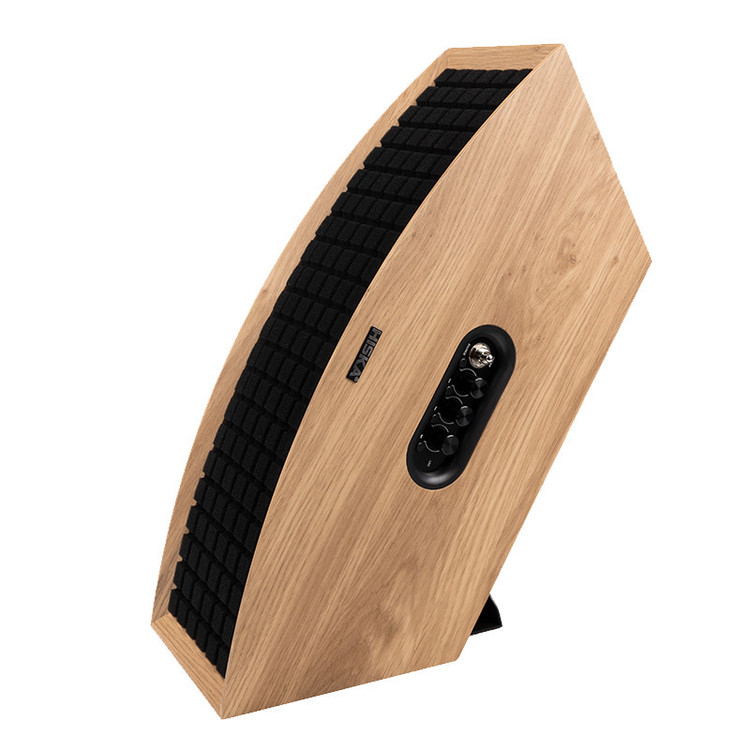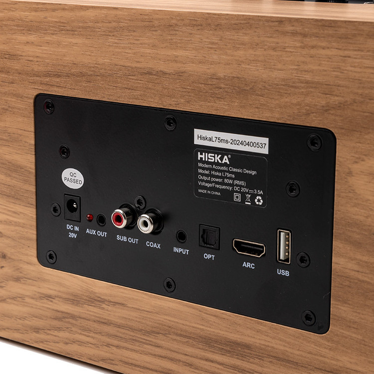 لوکس ، اصیل و خوش صدا سه تا کلمه ای هستش که میشه در وصف این مدل گفت ؛ اسپیکرHISKA L75ms از مدل های لوکس برند هیسکا می باشد. این اسپیکر بدنه چوبی و طراحی کلاسیکی دارد. این اسپیکر در عین اینکه ظاهری کلاسیک داره باطنی مدرن و به روز داره تا خیالتون از کانکشن ها راحت باشه ، محصول از آپشن های روز بیسیم پشتیبانی میکنه و به راحتی میتونید باسیم یا بیسیم بهش وصل شید. این محصول 5.2 کیلوئه که بخش عمده وزن به خاطر متریال چوبیشه ؛ توان خروجی صدای این اسپیکر 80 واته و البته که برقیه .این محصول برای عاشقان موزیک طراحی و تولید شده که با توجه به ،به روز بودنش میتونید تمام مسئولیت های صوتی خونه رو بهش محول کنید و دوستانتون رو دعوت به شنیدن صدای این اعجوبه کنید . در این اسپیکر دو ووفر 4 اینچی و دو تیوتر 0.75 اینچی چیده شده تا به بهترین شکل ممکن از موزیکتون لذت ببرید . بر خلاف ظاهر کلاسیکش براتون حسابی تدارک دیده و وقتی پشت محصول رو نگاه میکنید ، شگفت زده میشید که پورت HDMI arc دیگه کامل کاملش میکنه و اونجا پورت های خاصی مثل OPT و جک ۳.۵ هم هست تا دیگه به هرچی خواستید وصلش کنید و البته بلوتوث که خیلی راحت میتونید با گوشی موبایل ، بلوتوث لپ تاپ یا تلوزیونتون بهش وصل شید . بهتره تو این قسمت از متریال چوبیش بگیم که از چوب MDF بسیار با کیفیت استفاده شده و کاملا حس خوب منتقل میکنه و مخصوصا برای طرفدارای چوب و محصولات چوبی . این طراحی فقط ظاهری نبوده و این باکس میتونه کاملا مثل سازها صدا رو براتون آکوستیک پخش کنه و روی قسمت جلویی هم یه محافظ براتون در نظر گرفته شده تا اگر خواستید کلاسیک تر به نظر برسه و مثل اسپیکر های قدیمی بشه کافیه که اونو در بیارید تا درایو ها رو از نزدیک ببینید.
