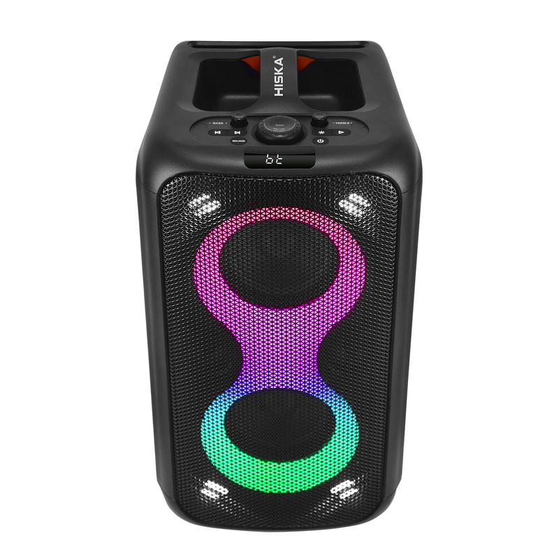 پارتی باکس هیسکا مدل 1020 یک اسپیکر قدرتمند و چندکاره با طراحی حرفهای است که برای مهمانیها، دورهمیها و استفاده در فضاهای باز بسیار مناسب است. این دستگاه با توان خروجی ۸۰ وات و توان لحظهای ۱۶۰ وات، صدایی شفاف، بلند و پرقدرت را ارائه میدهد. ترکیب دو بلندگوی ۵.۲۵ اینچی با بیس قوی و دو تیوتر ۲ اینچی، پوشش صوتی کامل و باکیفیتی را فراهم میکند. بدنه چوبی همراه با نمای جلویی از پلاستیک مقاوم و توری فلزی، ظاهری حرفهای و مستحکم به دستگاه داده است. این اسپیکر از ورودیهای متنوعی مانند USB، بلوتوث، AUX، رادیو FM، و کنترل از راه دور پشتیبانی میکند و همچنین دارای نمایشگر دیجیتال و قابلیت TWS برای اتصال بیسیم همزمان به اسپیکر دیگر است. باتری قدرتمند ۴۰۰۰ میلیآمپری آن با ولتاژ ۱۱.۱ ولت، استفاده بلندمدت و بدون نیاز به برق را ممکن میسازد. افکت صدای EQ و کیفیت صدای Mega-BASS تجربهای جذاب و غنی از موسیقی را فراهم میکنند. ورودی میکروفن و گیتار این امکان را فراهم میسازد تا از این دستگاه بهعنوان آمپلیفایر نیز استفاده شود. همچنین چراغهای رنگی پویا و نورهای استروبی که با ریتم موسیقی هماهنگ میرقصند، جلوهای چشمگیر به مهمانیهای شما میبخشند.