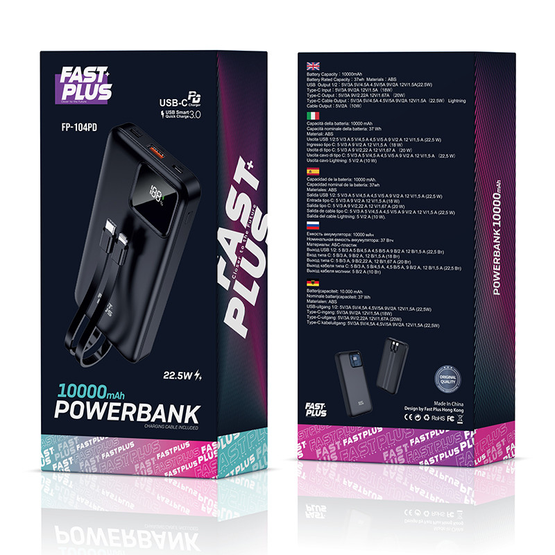 پاوربانک فست پلاس مدل FP-104PD ظرفیت 10000 میلی آمپر ساعت