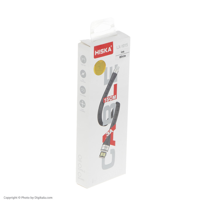 کابل تبدیل USB به لایتنینگ هیسکا مدل LX-1015 طول 0.15 متری بوده و از پلاستیک مقاوم پوشیده شده است. این جنس کابل کمک میکند تا در برابر کشش، پارگی، خم شدن و گره خوردن مقاومت داشته باشد. حداکثر شدت جریان خروجی کابل آیفونی LX-1015 معادل 3A است که امکان شارژ شدن دستگاه با سرعت بالایی را برای شما مقدور می سازد. این کابل علاوه بر شارژ کردن، امکان انتقال اطلاعات و دیتا را هم دارد. این کابل محصولی بادوام بوده و ولتاژ مطمئن و پایداری را ارائه میدهد. طول کابل تبدیل USB به لایتنینگ هیسکا مدل LX-1015 کوتاه بوده و از آن میتوان برای انتقال اطلاعات از لپ تاپ یا برای شارژ کردن دستگاههایی مانند موبایل و هدفون از طریق پاوربانک استفاده کرد.