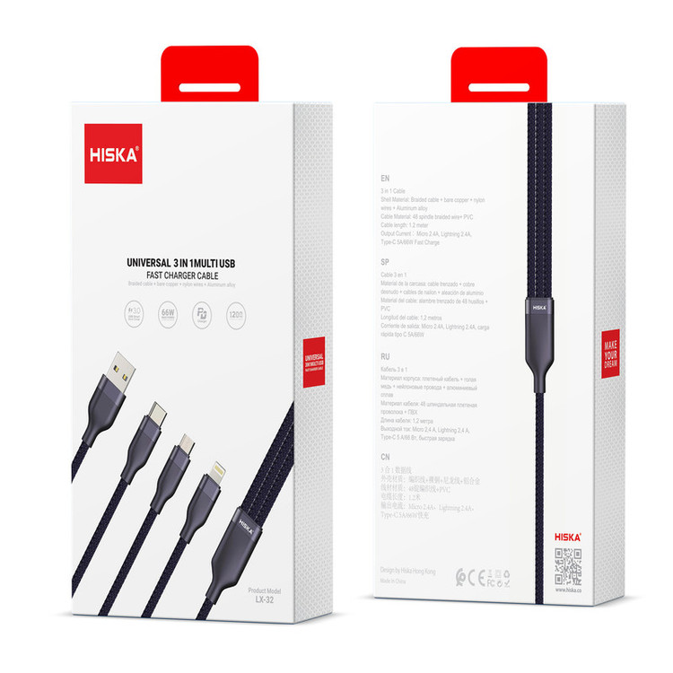 کابل تبدیل USB به لایتنینگ / USB-C / MICRO USB هیسکا مدل LX-32 طول 1.2 متر