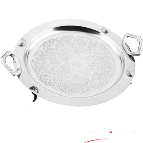 سینی استیل گرد طرح دار پایه دار فریم سانا دسته حلقه نگین صدفی دیاکو کد 324/5P