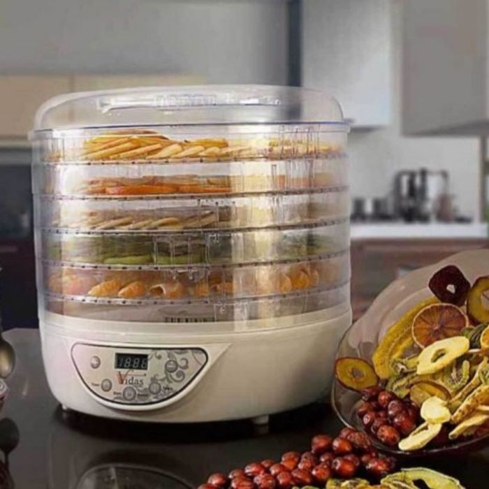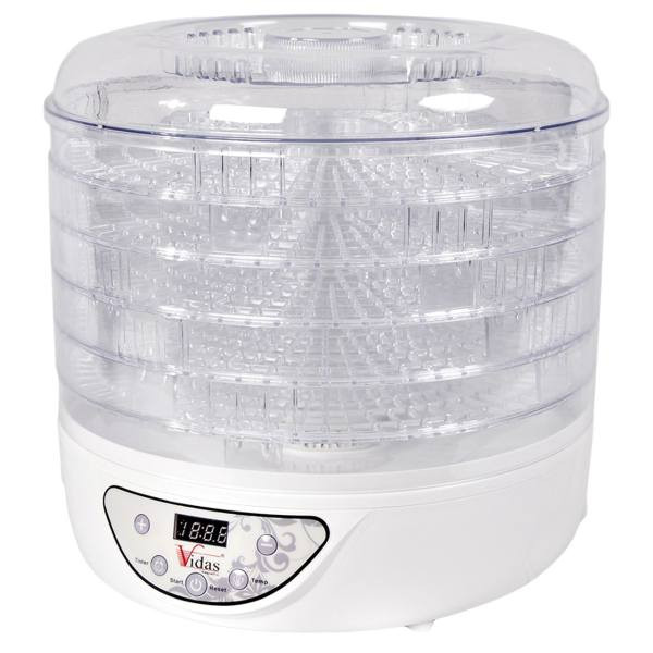میوههای خشک از تنقلات خوشمزه و سالماند که میتوانند جایگزین بسیار خوبی برای تنقلات ناسالم باشند. میوه خشک کن مکسی مدل FRUIT دستگاهی کارآمد برای دوستداران میوههای خشک و برگههای خوشمزهی میوه است. این محصول علاوهبر میوه، قابلیت خشککردن سبزیجات و گلها را دارد. با استفاده از این دستگاه میتوانید برگههای میوه را با اطمینان از سلامت و بهداشت کامل آنها در محیط خانهی خود تهیه کنید. بهترین قطر میوه برای خشککردن این دستگاه پنج میلیمتر است. میوه خشک کن ویداس مدل 5121 با برخورداری از پنج طبقهی مختلف اجازهی خشککردن چند نوع میوه را در یک زمان به کاربر میدهد. این دستگاه از موتور 400 وات برخوردار است . پنج سینی بزرگ دستگاه روی هم قرار میگیرند و امکان جداسازی از بدنه را دارند که نظافت آنها را آسانتر کرده است. این سینیها مشبک هستند تا گرما بهخوبی میان آنها منتقل شود. از طریق دکمههای تنظیمات دستگاه میتوانید دمای کار و تایمر آن را تنظیم کنید.
