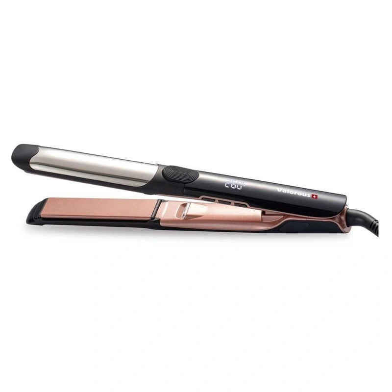 اتو موی حرفهای ولروس مدل VL-305 یکی از دستگاههای پیشرفته و حرفهای برای صاف کردن و حالتدهی به مو است که با بهرهگیری از تکنولوژیهای روز و طراحی ارگونومیک، انتخابی مناسب برای افرادی است که به دنبال نتایج صاف و درخشان در کمترین زمان ممکن هستند. این اتو مو با داشتن صفحات سرامیکی باکیفیت، توزیع یکنواخت حرارت را تضمین کرده و به جلوگیری از آسیبهای حرارتی به موها کمک میکند. قابلیت تنظیم دما و سیستم گرمایش سریع، از جمله ویژگیهایی است که این دستگاه را برای انواع مختلف مو، از نازک و حساس تا ضخیم و فر، مناسب میسازد. جنس صفحات این اتو مو از صفحه هایی با پوشش نانو تیتانیوم به همراه تکنولوژی فوق العاده ی تولید یون است.چراکه حرارت و گرما در سطح این صفحات به صورت یکنواخت و یکسان پخش خواهد شد.این محصول قابلیت تنظیم دما در درجات مختلف را دارا است که بیشترین دمای آن 260 درجه سانتی گراد است و از طریق سیستم گرمایشی سریع در عرض چند ثانیه به دمای مورد نظر خواهد رسید. اتصال کابل برق به دستگاه ، قابلیت چرخش ۳۶۰ درجه دارد و استفاده از آن را ساده تر کرده است.این محصول دارای طراحی ارگونومیک همچون وزن مناسب، خوش دست، ظاهری شیک بوده که کاملآ حرفه ای طراحی شده و نه تنها برا استفاده شخصی برا استفاده سالنی (آرایشگاه ها) بسیار مناسب و کاربردی هست.