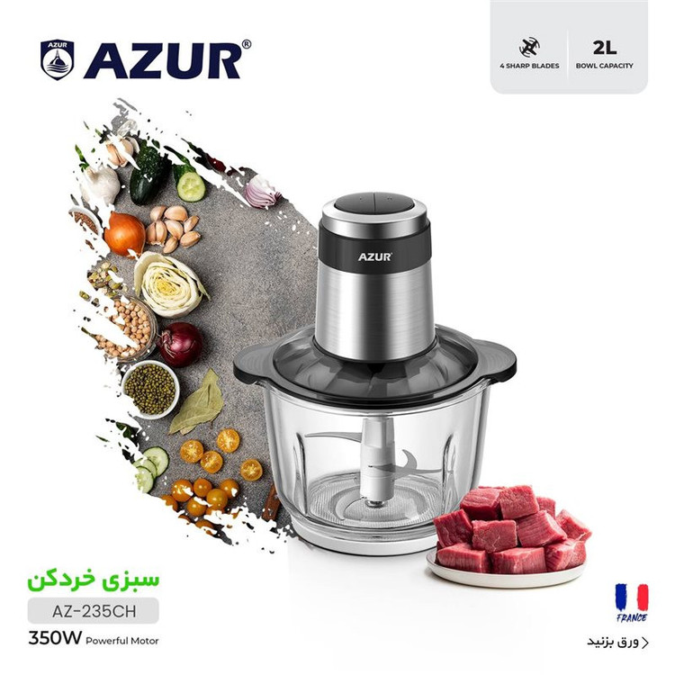 خرد کن آزور مدل AZ-235CH با توان 350 وات دارای کاسه از جنس پیرکس با ظرفیت 2 لیتر و همچنین به همراه چهار تیغه مجزا می باشد این خردکن از موتور قدرتمند تمام مسی تشکیل شده و مجهز به سیستم قطع کن خودکار است